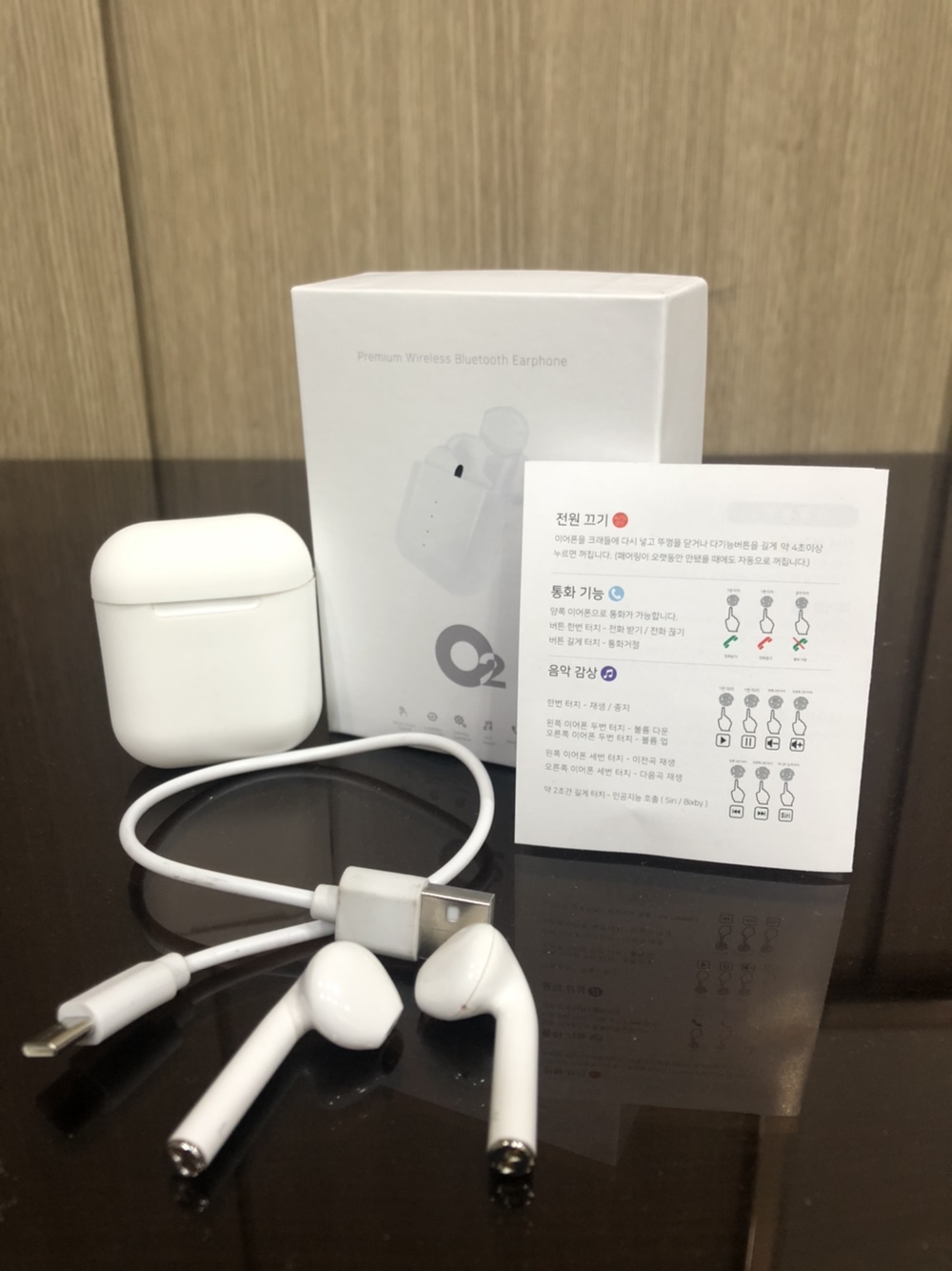 구성품으로는 충전 케이스 , 충전 케이블 아이팟 설명서, 서비스로 받은 케이스고리 이렇게 들어있는데요.