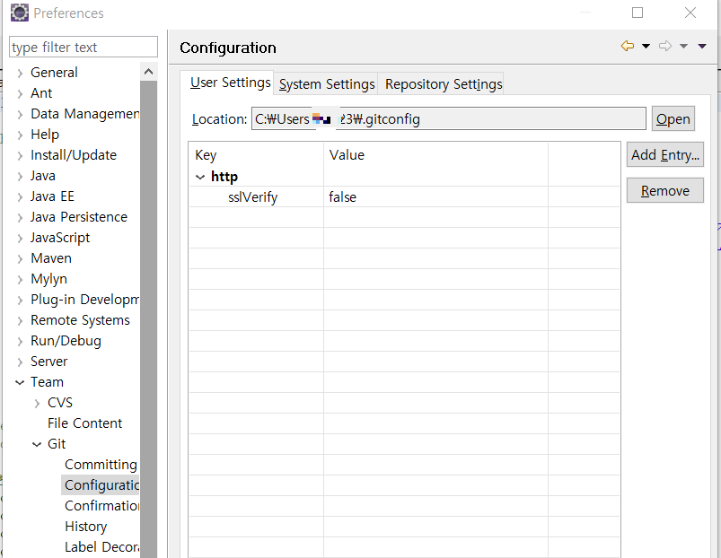 addEntry 클릭후 팝업창에서 아래와 같이 입력