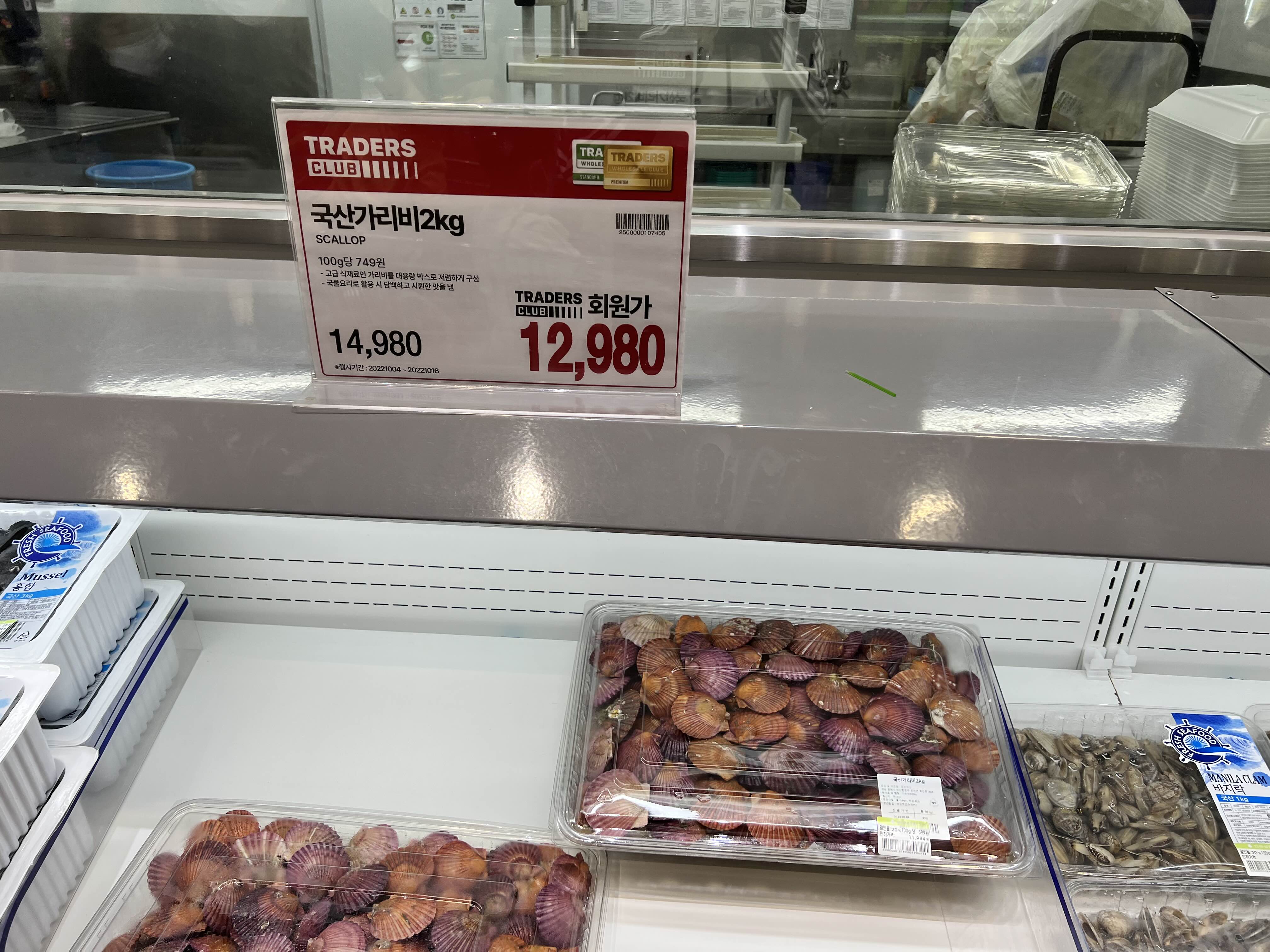 국산 가리비 2kg이 12,000원에 판매되고 있었다.